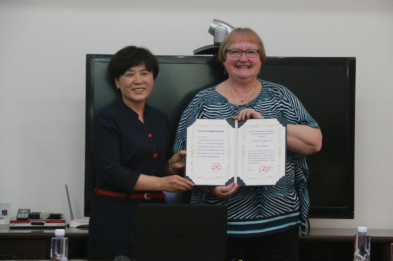 乔妮·斯卓姆女士来自美国加利福尼亚州,早在1985年,乔妮·斯卓姆女士作为美国英语协会(English Language Institute)高级讲师远渡重洋来到中国,任教于D体育在线登录官网,开启了她在中国30余年的从教之路。在此期间,她先后在吉林师范大学任教3年,在北京信息工程学院任教3年,到东北师范大学学习汉语2年。1997年,她重返D体育在线登录官网这所对她而言有着特殊意义的高校从教至今。在17年的教学生涯中,她先后为我校本科生、研究生开设了《英语写作》、《美国文学》等17门不同的专业课程,教授学生人数多达3,500余人。