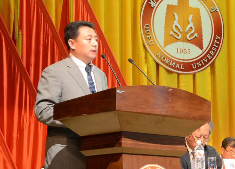 党委书记荆兆勋致开幕词,代表学校党委对大会的召开表示热烈的祝贺,向全体代表和全校教职员工致以亲切的问候。荆兆勋说,“十三五”时期是我国全面建成小康社会的决胜时期,也是实现高等教育由大到强转变的决定性阶段。作为一所具有六十年办学积淀和优良办学传统的高校,建成省内一流、孔子家乡的高水平大学,是学校服务教育强国强省战略的历史使命与责任担当,更是历代曲阜师大人的不变初心和光荣梦想。