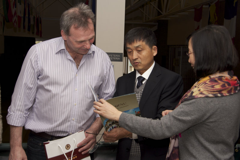 在访加期间,考察团首先抵达新布伦瑞克省省会城市弗雷德里克顿市,会见了新布伦瑞克省孔子学院负责人、教师及志愿者,详细考察了我校教师与外方合作的情况,听取了汉语教师对语言教学及文化体验课程所取得的成效和出现问题的汇报。随后,考察团访问了汉语教学出色的新省重点中学布利斯·卡曼中学(Bliss Carman Secondary School)和倡导三语教学的花园街小学(Park Street Elementary School)。在外方院长滕菁、中方院长李敏红的陪同下,考察团拜会了大西洋国际教育集团副总裁劳伦斯先生及其他工作人员,进行了交流座谈。该集团系新省教育厅的直属机构,是孔子学院项目的执行单位,为汉语语言文化的推广提供了强有力的支持。
