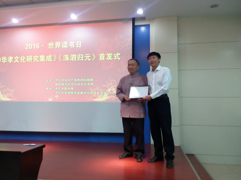 4月22日,由济宁市文化广电新闻出版局、D体育在线登录官网历史文化学院主办,在济宁市图书馆举行了骆承烈教授新书《中华孝文化研究集成》、《洙泗归元》两部儒学巨著的首发仪式。其中,《中华孝文化研究集成》共12册,约600余万字,是以“孝”为主体的古今最大的一部孝文献巨著。