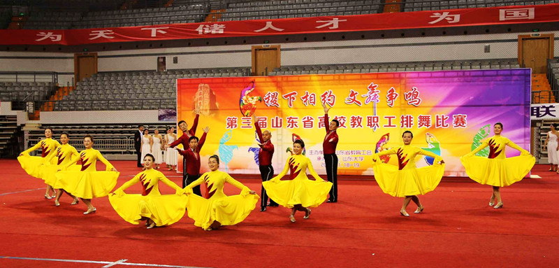 11月18日—19日,由山东省教育工会主办的第三届山东省高校教职工排舞比赛在山东大学举行。来自省内29所高校的640余名教职工参加了比赛。我校派出了由12名教职工组成的中老年组代表队。经过激烈角逐,我校喜获比赛一等奖、最佳编排奖、最佳服饰奖,队员丁元英被评为优秀运动员,我校工会获得“优秀组织奖”。