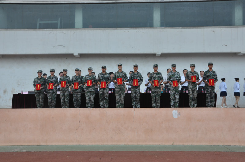 大会宣读了军训先进单位和个人名单,在主席台就坐的领导为获奖代表颁发了奖牌和证书。