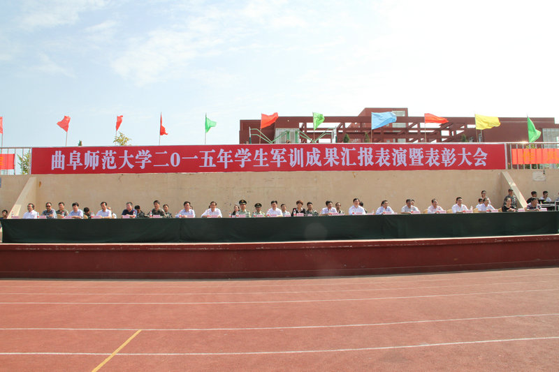 9月25、26日,我校2015级军训汇报表演暨总结表彰大会在两校区隆重举行。学校领导戚万学、马东骅、康淑敏、扈庆学、王继锁,中国人民解放军72395部队副部队长王支福,军训团团长、日照边防检查站副政委李文华,日照市大学科技园工委副书记、管委调研员姜书明以及学校有关部处负责人和各学院党总支副书记出席大会并在主席台就坐。大会分别由校学生工作处副处长王志华、日照校区学生工作办公室副主任徐正伟主持。