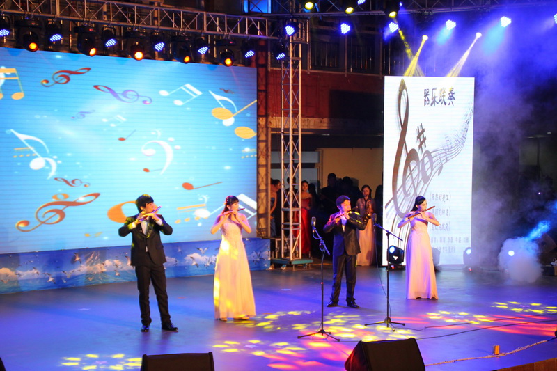 晚会以一支现代舞《奔跑》拉开了晚会序幕,伴随着动感的旋律,璀璨的灯光,研究生们的舞姿热力四射。流行歌曲联唱节目,《漂洋过海来看你》、《喜欢你》、《同手同脚》等歌曲串烧在一起,瞬间点燃了全场观众的热情。而器乐联奏《美丽的神话》、《最炫民族风》等,向大家展示了二胡、笛子、萨克斯等不同乐器融合在一起的独特魅力。令人陶醉的是音乐学院王翼亭、张拜侬、张立群三位老师分别在晚会中大展歌喉,他们美妙的歌声,引来学生们一阵阵的热烈地欢呼声。随后的《二胡随想曲》节奏欢快、精彩绝伦,尽显我校学子在音乐方面的专业素养和水平。在舞蹈串烧节目中,演员的舞蹈动作与音乐融为一体,刚柔并济,赢得了现场阵阵的掌声。