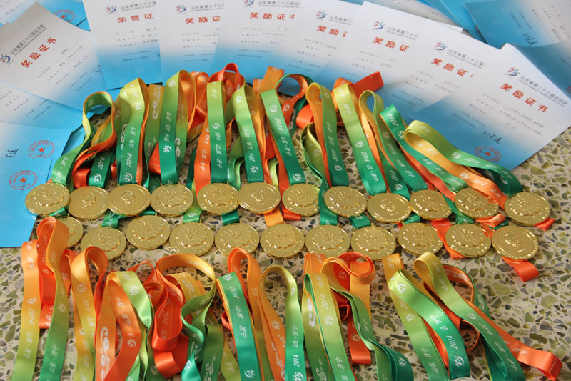 今年我校共派出五支队伍参加了山东省第23届运动会(大学甲组)的比赛,各代表队通过精心选拔,刻苦训练,取得优异成绩,其中田径比赛团体总分第一名(男子组、女子组均为全省第一)、啦啦操比赛全省第二名(花球第二,爵士第三)、武术比赛团体总分第四名、乒乓球团体第六名(男子甲组团体第九名,女子甲组团体第五名)、男子篮球队获团体甲组第六名。