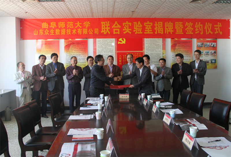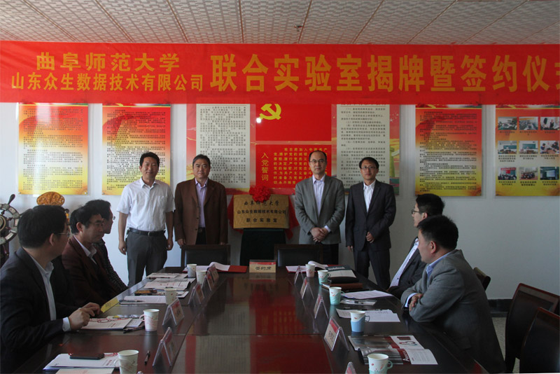 10月16日上午,我校与山东众生数据技术有限公司举行联合实验室揭牌和签约仪式。副校长、日照校区管委会主任马东骅,日照市科技局党组副书记、副局长冯志亮,日照市经委信息化推进科科长赵修军,山东展望信息科技有限公司董事长、山东众生数据技术有限公司执行董事长王万刚,山东众生数据有限公司总经理张磊,日照校区管理办公室、科技处、信息科学与工程学院院相关负责人,各研究所所长、系主任及部分专家教授参加了仪式。仪式由联合实验室管委会主任、信息科学与工程学院副院长禹继国主持。