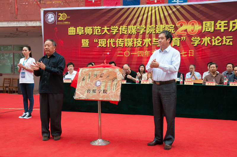 9月27日,传媒学院建院20周年庆典暨“现代传媒技术与教育”学术论坛举行。副校长、日照校区管委会主任马东骅,传媒学院前任老领导、优秀校友代表,各高校嘉宾,日照市各单位代表,日照校区各单位负责人,传媒学院全体领导老师参加了庆典。马东骅和传媒学院老领导高登洪共同为传媒学院揭牌。