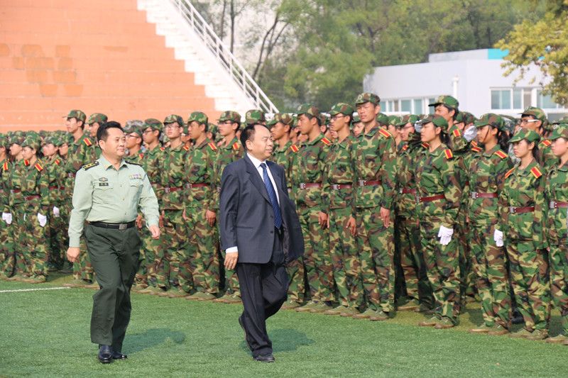 副校长马东骅、康淑敏代表学校向全体承训的解放军官兵和国旗护卫队队员表示崇高的敬意和衷心的感谢,向为军训提供保障服务的教职员工表示亲切的慰问,向圆满完成军训任务的2014级同学表示热烈的祝贺。