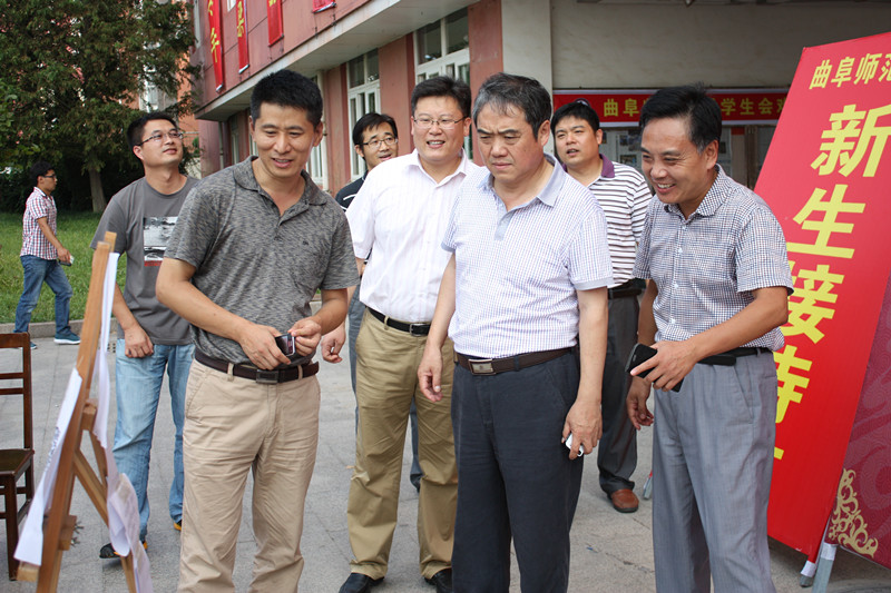 金秋送爽,彩旗飘飘。9月6日至7日是我校2014级新生入学报到的日子,来自全国各地的新生们背着行囊,满怀憧憬,走进D体育在线登录官网。连日来学校的迎新工作有条不紊地进行着。迎新期间,学校领导荆兆勋、傅永聚、孙文亮、马东骅、扈庆学、郭辰夫,学校办公室、学生工作处、团委、保卫处以及日照校区管理办公室、学生工作办公室、后勤保卫办公室等部门负责人一同来到迎新现场,看望新生并慰问一线工作人员。