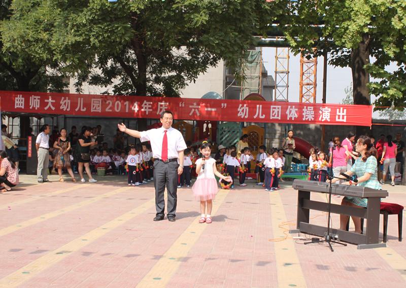 5月30日上午,幼儿园举办庆六一幼儿团体操演出活动,庆祝即将到来的第65个国际儿童节。学校党委书记荆兆勋、副校长扈庆学,与学校办公室、团委、保卫处、后勤管理处、基建处等单位负责人一起来到活动现场,向孩子们送上节日的祝福。