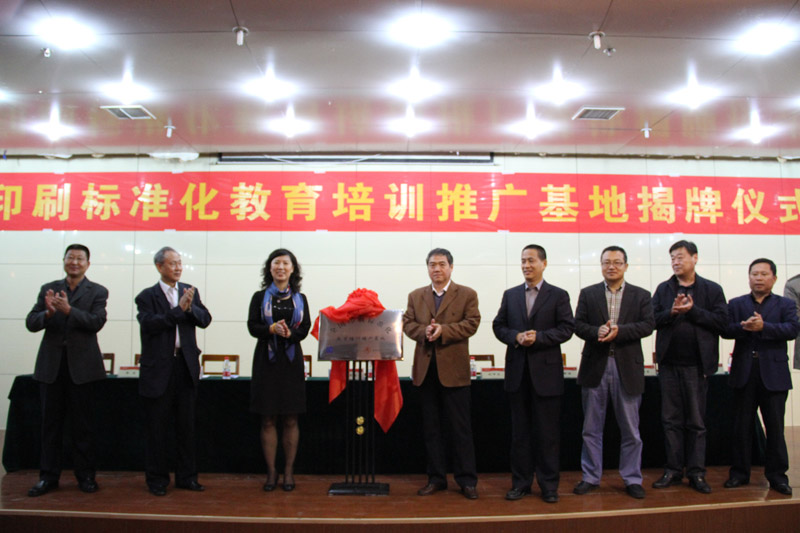 随后,出席仪式的领导共同为全国印刷标准化教育培训与推广基地揭牌,并一起参观了印刷学院试验室和实训设施。