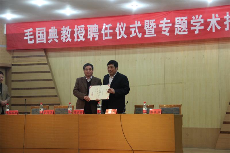 11月5日下午,江西省书协主席毛国典兼职教授聘任仪式在孔子会堂举行。副校长、书法学院院长马东骅出席仪式并为毛国典颁发了兼职教授聘书。人事处、书法学院负责人及师生代表参加了聘任仪式。