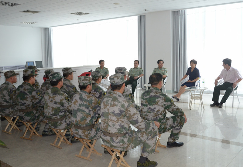 9月16日下午,2013级新学军训进入第6天,济宁预备役炮兵师参谋长翟英峰、副参谋长周雷一行来我校视察指导军训工作,并亲切慰问了正在进行紧张训练的参训官兵及师生。党委副书记孙文亮、副校长康淑敏学生工作处、日照校区学生工作办公室负责人陪同视察。