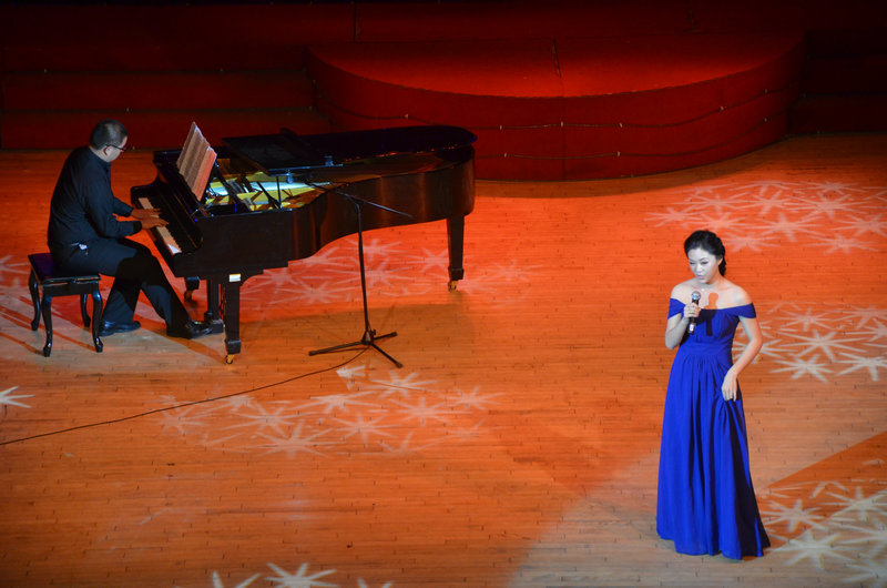 一场激情四射的《盛世欢歌》拉开了演出的帷幕,舞蹈专业的同学们以专业的水准向现场观众展示他们的华美舞姿,以欢快的舞步展现大学生的朝气蓬勃。一首美声歌剧《姑娘的秋波》在演唱者生动自然的表演下将凄美的爱情故事表现得淋漓尽致,天籁般的嗓音与灵动的表情和动作结合得自然巧妙,观众席上不时地爆发出热烈的掌声。民乐队同学一曲吹打乐《农家乐》让现场观众感受到农家别样的欢乐,仿佛进入农家喜庆的节日气氛。群舞《南京亮》让人们重温那段沉重的历史,激起国人心中对自由的热爱与追求,将晚会气氛推向高潮。一首首歌曲,一段段舞蹈,一曲曲器乐演奏,各种风格迥异的表演给观众带来不一样的享受,也让大家领略到高雅艺术的独特魅力。在一曲歌伴舞《吉祥颂》之后,晚会在观众的热烈掌声中落下帷幕。