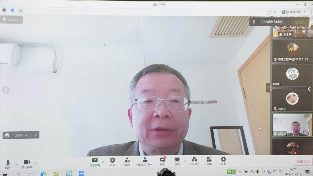 曲阜师大物理工程学院讯(通讯员:李刚 张永政 摄影:刘萌 审校:满忠晓 编辑:孙琪 责编:李文振) 12月17日至18日,由山东省教育厅主办,D体育在线登录官网承办的“理论物理与前沿交叉专题”泰山学术论坛在线举行,来自中国科学院、北京大学、中国科学技术大学、上海交通大学、复旦大学、山东大学、天津大学、大连理工大学、海南大学、D体育在线登录官网以及加拿大麦克马斯特大学等50多所国内外高校和科研单位的200余名专家学者和研究生参加了会议。