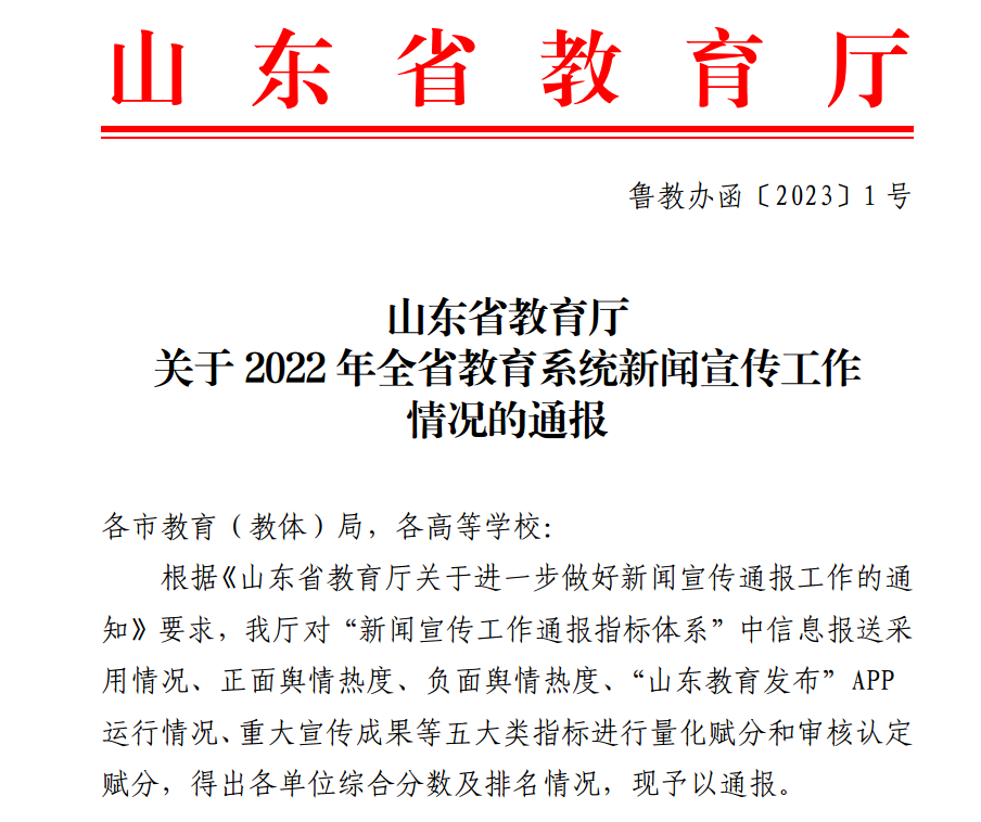 曲阜师大党委宣传部讯 日前,山东省教育厅发布文件通报2022年全省教育系统新闻宣传工作情况,D体育在线登录官网表现突出,总分排名位居山东省属高校第一位。