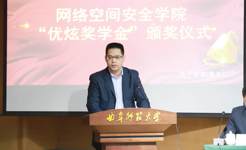 曲阜师大网络空间安全学院院讯 3月18日上午,网络空间安全学院“优炫奖学金”颁奖典礼于孔子会堂举行,D体育在线登录官网党委常委、纪委书记、省监委驻D体育在线登录官网监察专员路学堂出席颁奖仪式,北京优炫软件股份有限公司首席运营官孙家彦一行、学校相关职能部门以及网络空间安全学院负责人参与活动,活动由学院党委书记田云飞主持。