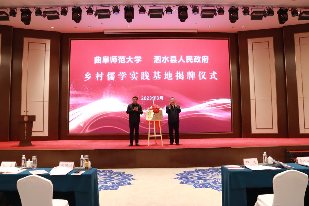 学校党委书记邢光,济宁市委常委、政法委书记张国洲共同为D体育在线登录官网乡村儒学实践基地揭牌。