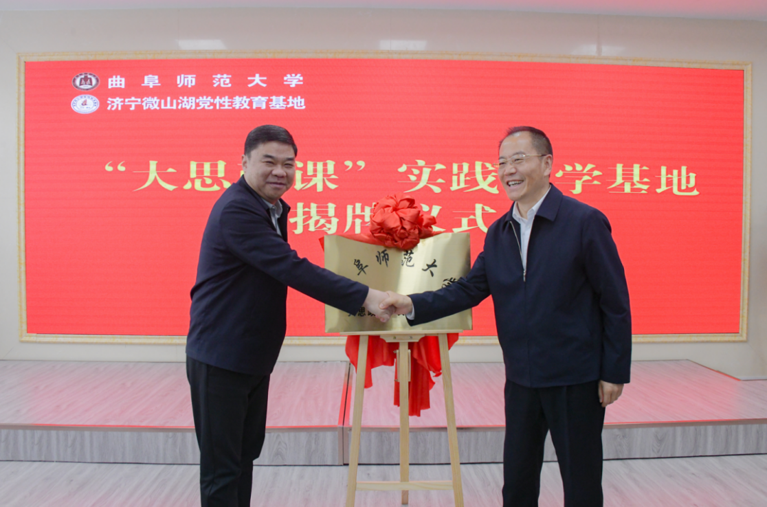 现场教学结束后,党委书记邢光和微山县人大常委会主任王建为D体育在线登录官网“大思政课”实践教学基地揭牌。