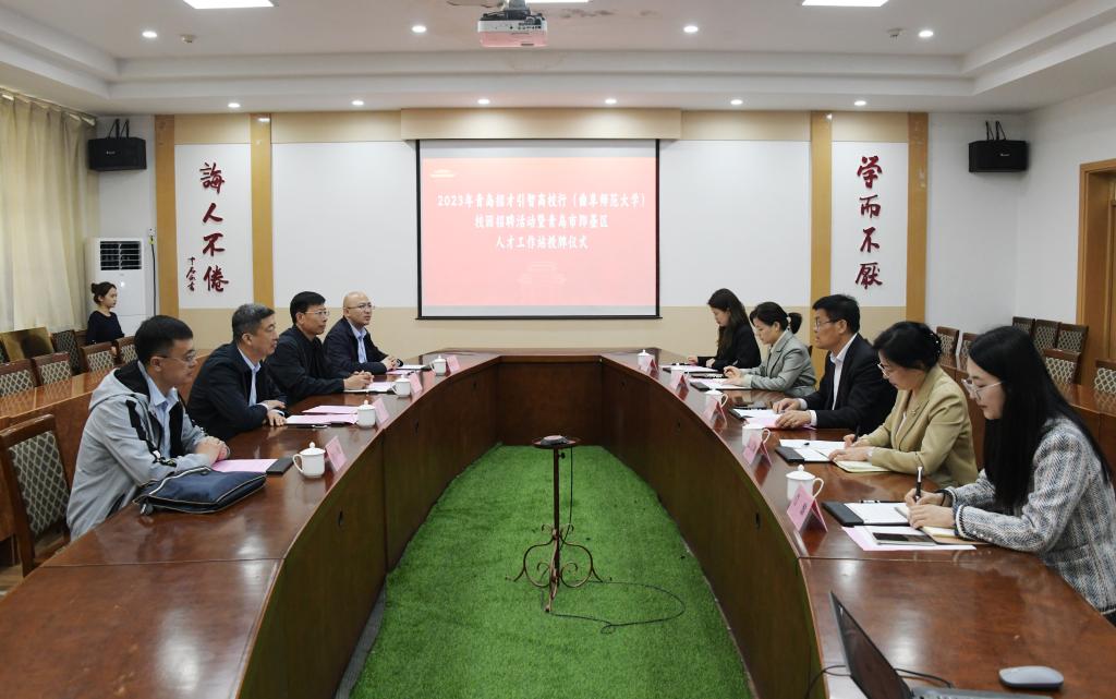 曲阜师大学生工作处讯 近日,“墨上花开·职等您来”校园引才直通车青岛市即墨区引才推介会暨“人才工作站”签约授牌仪式在曲阜校区举行。青岛市即墨区人力资源和社保障局局党组成员、事业单位人事服务中心主任宋军,曲阜师大党委副书记卢国强共同为“人才工作站”揭牌。学生工作处处长姜美颖主持了会议。