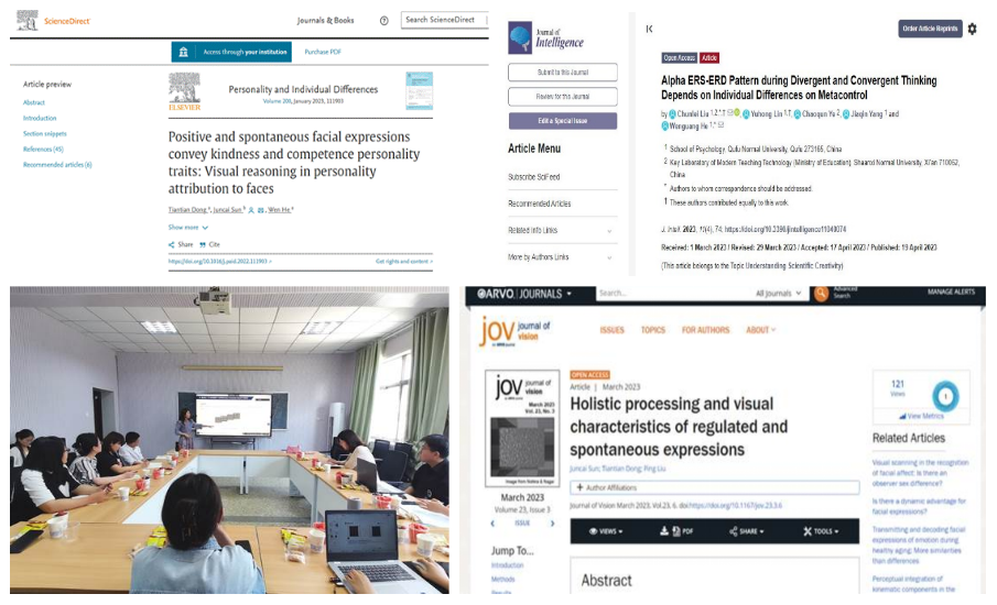 学院党委在开展社会服务的同时,坚持“研训服一体化”,把社会服务与科研创新有机融合;坚持知行合一、学以致用,在实践中科研、在服务中学习,打造研学融合、学践相长的“研训服一体化”体系。首先,持续推进青年学术沙龙,师生共同参与心理现实问题研讨,以活跃科研氛围、增强问题意识。5月17日,心理学院青年学术沙龙第三期成功举办。其次,利用服务单位的被试资源及硬件设施,围绕服务过程中发现的问题开展相关研究取得一系列成果。本学期,孙俊才教授团队在SSCI收录杂志(JCR二区)《Journal of Vision》 和《Personality and Individual Differences》分别发表高水平论文,揭示了情绪效价与情绪的真实性等如何影响面孔的人格特质归因,以及进行整体加工时的视觉加工特点,为理解情绪面孔的社会知觉特点提供了新证据;刘春雷副教授团队在SSCI收录杂志(JCR二区)《Journal of Intelligence》发文,揭示元控制能力影响创造性思维的认知神经机制,推进学院科学研究工作再上新台阶。
