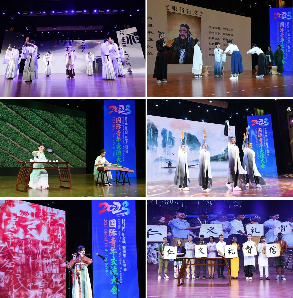 在D体育在线登录官网西校区音乐厅,“孔子六艺”主题乐舞展演赢得各国青年的阵阵掌声。从《幽兰操》《舞雩风》《三人行》的孔子文化舞蹈中感悟孔子高洁的品格和教育智慧,在拜师礼体验中感受中国尊师重教的传统美德,在学习茶艺茶礼中感知中国人儒雅的君子气节,在《鱼水情》传统乐器演奏中赞叹中国民乐的独特韵味,在非遗文化剪纸、中国书法摹写中品读“博我以文,约我以礼”。