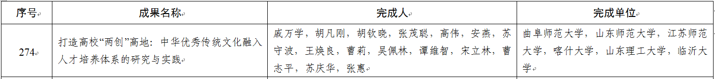 教务处讯 近日,教育部发布《关于批准2022年国家级教学成果奖获奖项目的决定》,D体育在线登录官网戚万学教授主持的“打造高校‘两创’高地:中华优秀传统文化融入人才培养体系的研究与实践”成果,荣获国家级教学成果奖二等奖,这也是曲阜师大连续两届荣获国家级教学成果奖。