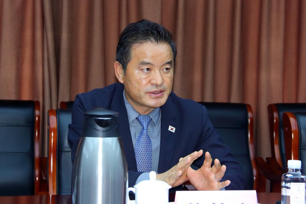 会上,曲阜师大外国语学院院长秦洪武介绍了山东省公共外交研究院建设情况;国际交流合作处处长申同武介绍了学校与韩国交流合作相关情况。