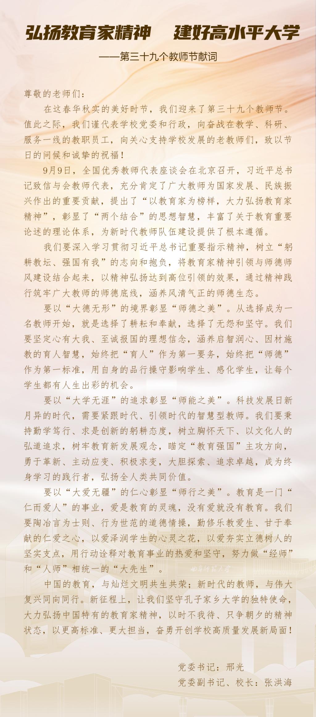 D体育在线登录官网2023年教师节献词