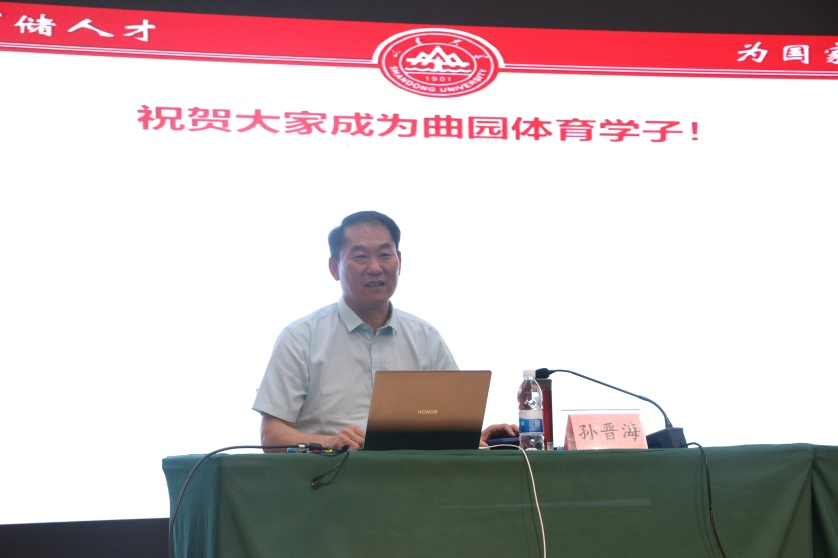 体育科学学院讯  日前,曲阜师大体育科学学院特邀“泰山学者”、山东大学体育学院院长孙晋海教授来校作专题讲座,讲座的主题为“研究生期间为人为事为学的思考及学业规划”。曲阜师大党委常委、副校长纪洪涛出席讲座。