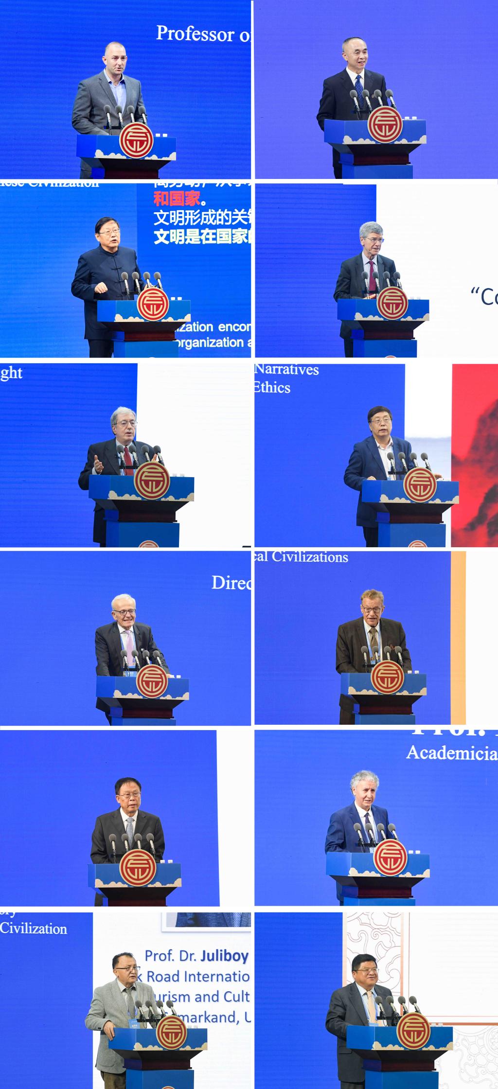 中国社会科学院学部委员、历史学部主任、河南大学特聘教授、中国考古学会理事长王巍院士,联合国可持续发展解决方案网络主席、哥伦比亚大学教授杰弗里·萨克斯,希腊雅典大学资深教授、中国-希腊文明互鉴中心指导委员会主席斯泰利奥斯·维尔维达基斯,北京大学哲学系教授、教育部长江学者特聘教授王中江,国际儒联副会长、德国图宾根大学中国中心主任施寒微,德国国家科学院院士、埃尔兰根-纽伦堡大学资深教授朗宓榭,D体育在线登录官网特聘教授、孔子文化研究院院长王钧林,塔吉克斯坦共和国科学院院士、人类学中心主任穆罕默德利·穆扎法尔,乌兹别克斯坦丝绸之路国际旅游与文化遗产大学第一副校长乔里博伊·艾尔塔扎罗夫,山东大学历史文化学院特聘教授、中外古典文明研究中心主任、中国先秦史学会副会长江林昌等10位中外专家学者,围绕“鉴古知今:古典文明的当代价值”这一主题,结合各自研究领域,阐发了诸多精彩的思想观点,彰显了学术创新的活力,体现了文明交流的魅力。