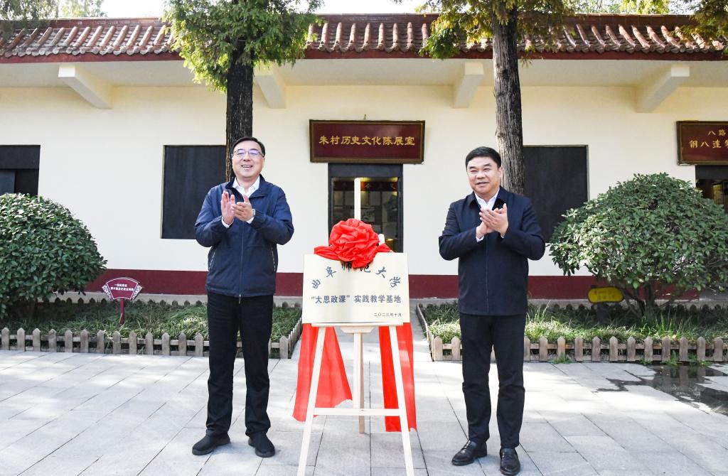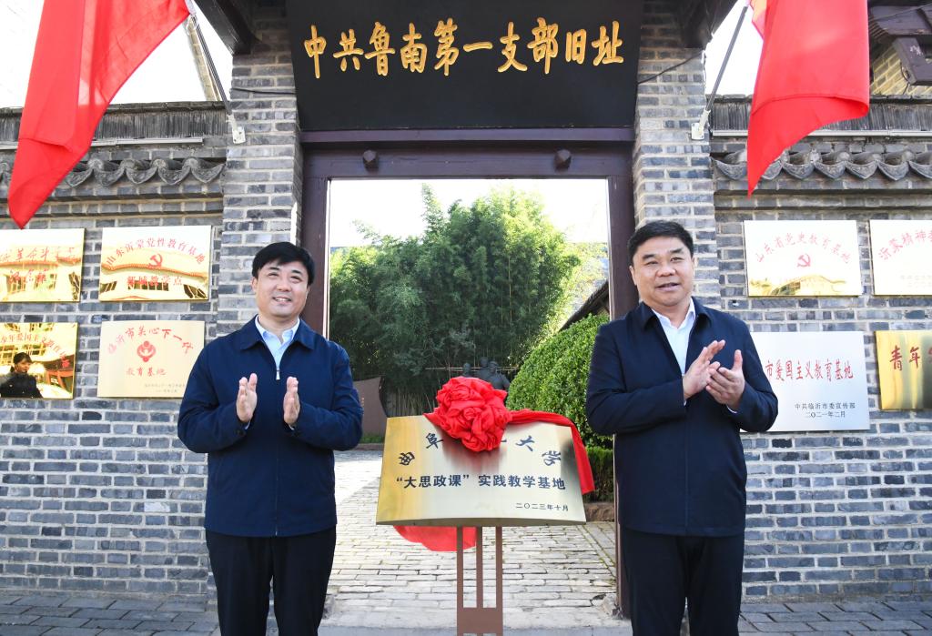 学校党委书记邢光与临沭县委书记张雷共同为D体育在线登录官网“大思政课”实践教学基地揭牌。