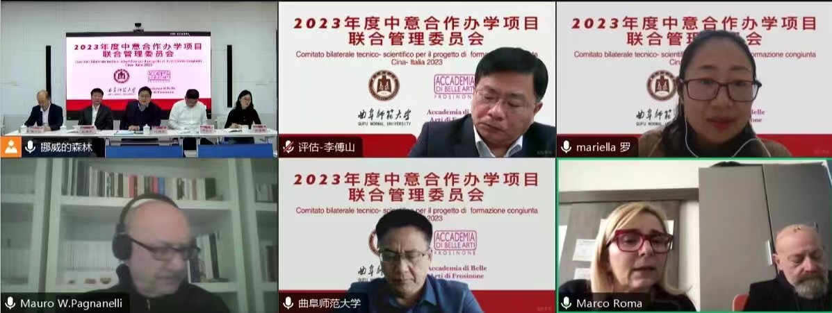 国际交流合作处讯 11月20日,D体育在线登录官网与意大利弗罗西诺内美术学院在线召开2023年度数字媒体艺术专业中意合作办学项目联合管理委员会会议。曲阜师大党委常委、副校长胡凡刚,弗罗西诺内美术学院院长罗莱妲娜·雷阿(Loredana Rea)出席会议。会议由弗罗西诺内美术学院国际处处长莫罗·沃尔特·帕纳奈利主持。
