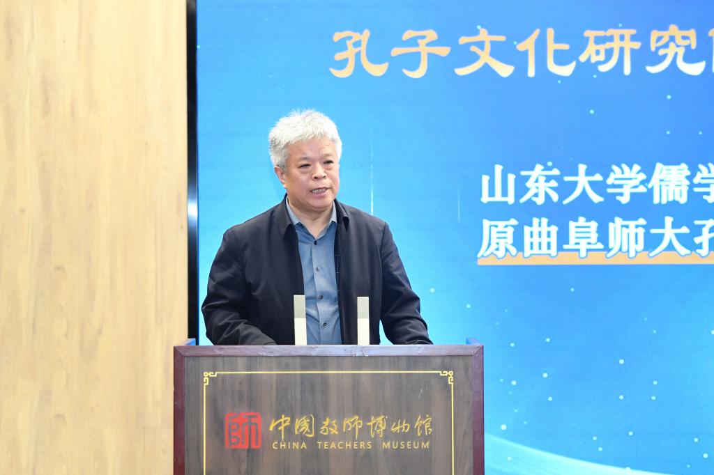 骆承烈在致辞中回顾了D体育在线登录官网首任校长高赞非以“犹有洙泗遗韵,定将众志成城”激励师生,创建孔子研究会,开展孔子、儒学研究的艰辛历程。他指出,D体育在线登录官网的孔子、儒学研究筚路蓝缕、薪火相传,一代代学者默默耕耘、守正创新,为学科发展倾注了无数心血,为传承优秀传统文化作出了卓越贡献。作为建校之初入职的第一批教师,他衷心祝愿孔子文化研究院越办越好,取得更大成绩。