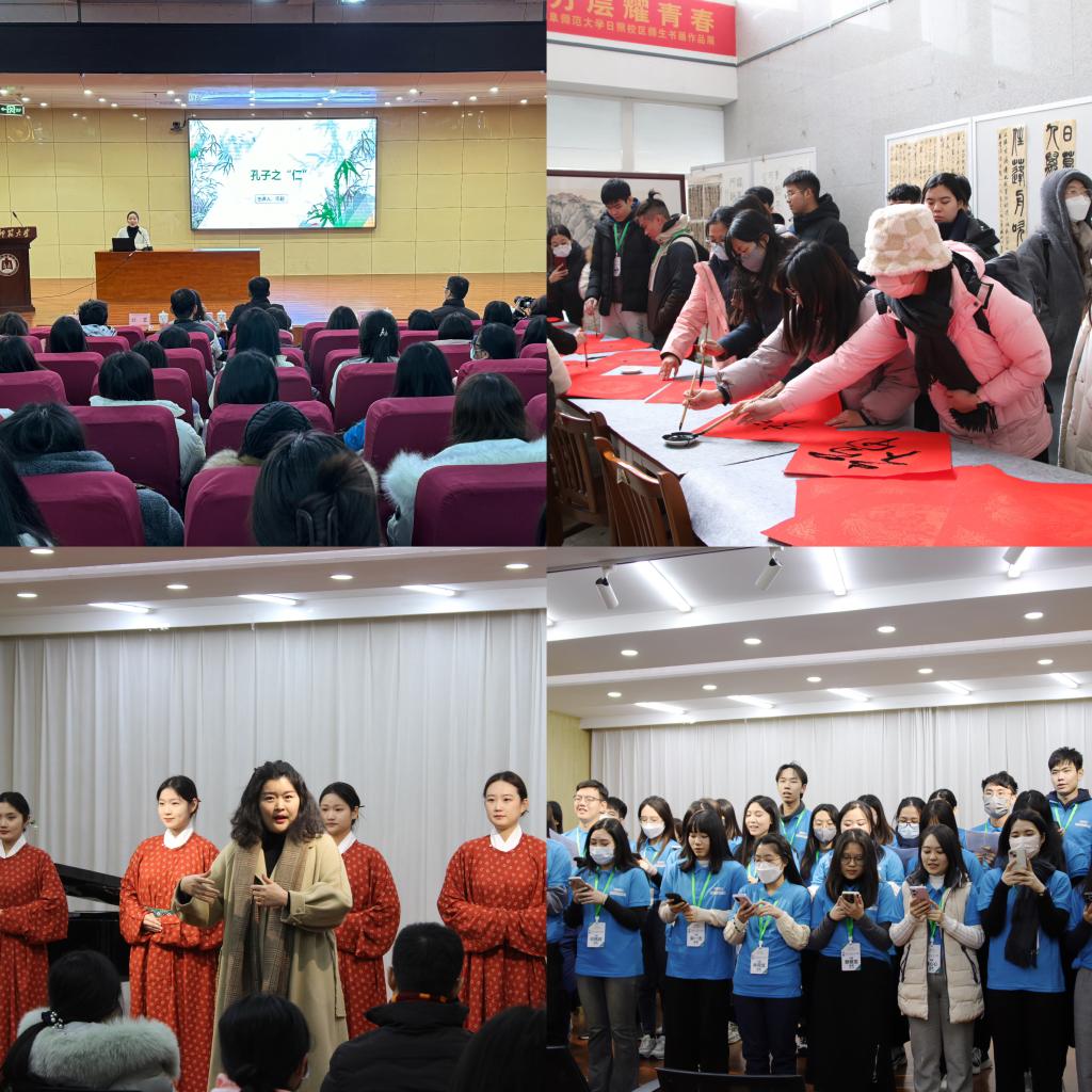 活动中,胡凡刚与陈志禄互赠纪念品。马克思主义学院副教授、硕士生导师宗超以《孔子的“仁”》为题作国学报告,从“仁者,人也”和“仁者爱人”两个方面使同学们对孔子“仁”的思想有了更深刻的理解。美术学院的同学带领大家进行书法体验,红红的“福”字象征着双方的友谊与祝福。音乐学院张建华老师和同学们运用吟、诵、讲等形式,将《关雎》、《长歌行》、《秋风词》、《锦瑟》等古谱诗词通过声、情、意、韵进行立体展示。最后,香港教育大学的同学们带来合唱表演《海阔天空》、《喜欢你》,将活动的气氛推向高潮。