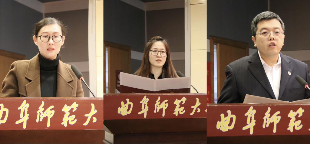 在随后的嘉言共读环节,现场全体教师在“青年教师成长导师”宋润民、王翼亭、李玉梅的带领下共读《新时代高校教师职业行为十项准则》,深刻领悟从师从教真谛,增强教书育人的责任感使命感。