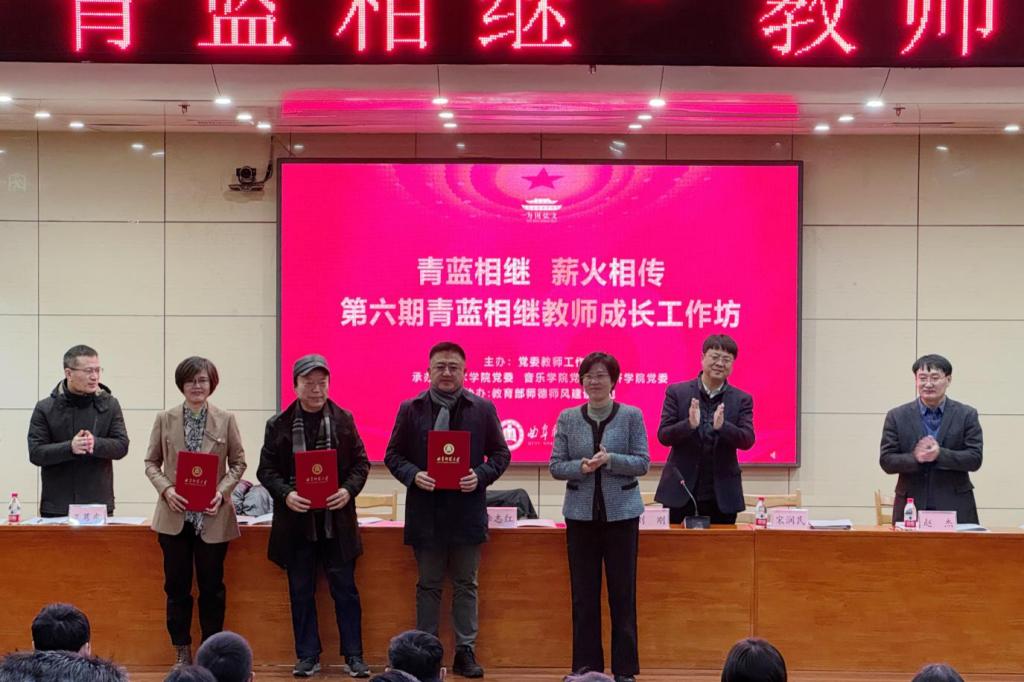 美术学院宋润民教授、音乐学院王翼亭教授、经济学院李玉梅教授受聘学校第六批“青年教师成长导师”,党委副书记李志红为三位成长导师颁发证书。