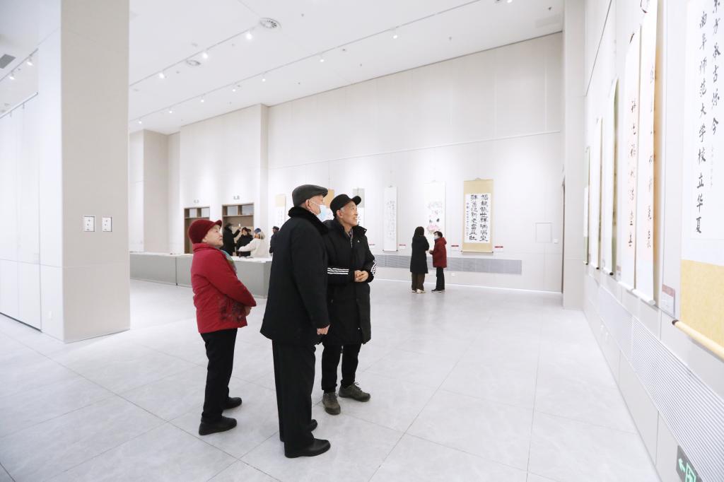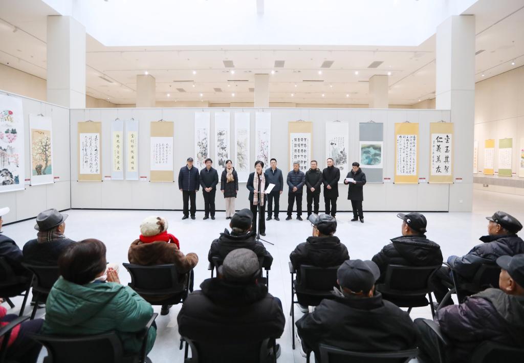 组织部、离退休工作处、后勤管理处、校医院、美术学院、书法学院等相关单位负责同志共同参加仪式。仪式结束后,学校领导和现场师生一起欣赏书画展览作品。