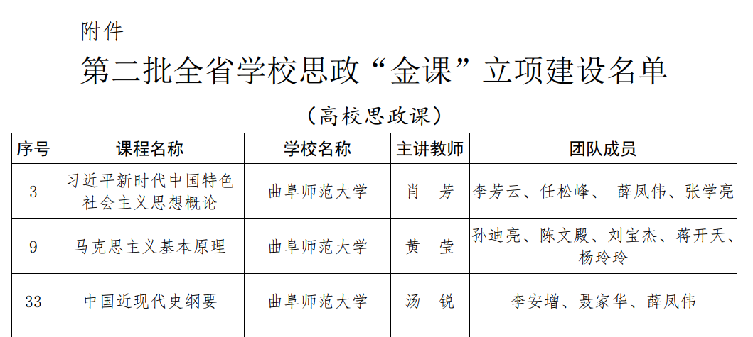 曲阜师大马克思主义学院讯  日前,山东省教育厅下发了《关于公布第二批全省学校思政 “金课”立项建设名单的通知》,曲阜师大马克思主义学院获批了3门省级思政“金课”立项建设,创历史新高,立项数位列山东高校第1位(同山东师范大学并列第一)。