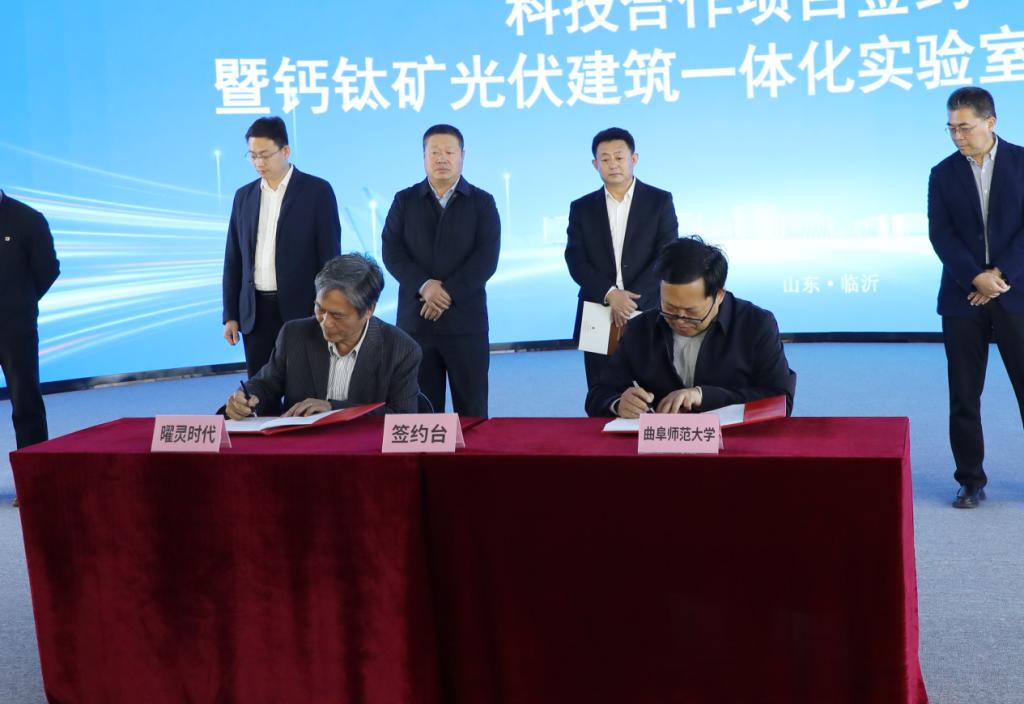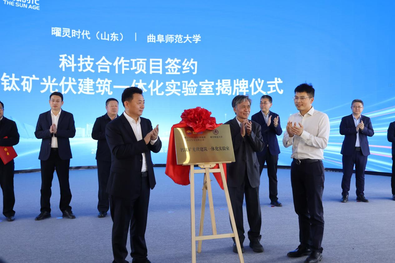 签约仪式上,与会领导共同为“钙钛矿光伏建筑一体化实验室”揭牌。曲阜师大与曜灵时代(山东)公司就新型PV与BIPV组件技术联合科研攻关项目达成合同额二千万元合作协议。