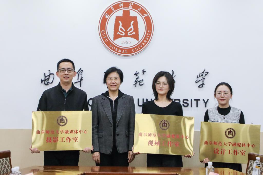 李志红分别向D体育在线登录官网融媒体中心摄影工作室、视频工作室、设计工作室授牌。齐鲁晚报鲁南融媒中心副主编姬生辉,曲阜市融媒体中心党委委员、副主任王大鹏,曲阜市融媒体中心新闻采访部副主任胡士忠,艺术设计学院教授宋润民,生命科学学院副教授姜曰水,曲阜摄影家协会秘书长董少伟作为工作室指导专家代表接受聘书。