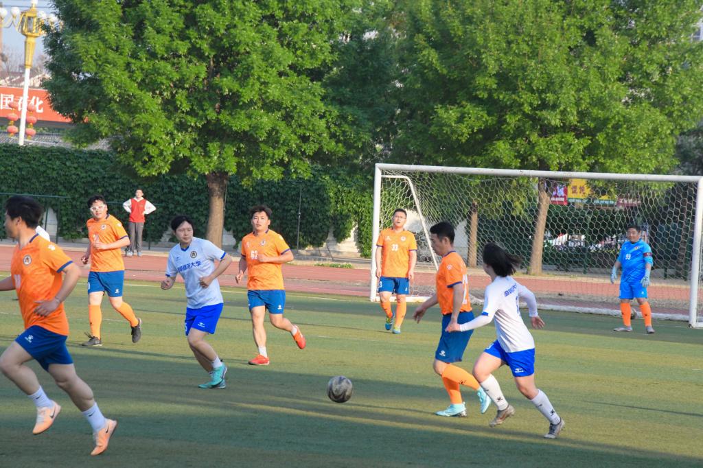 闭幕式上,山东鲁能泰山D体育在线登录官网女子足球队与学校教职工足球队同台竞技,为广大师生带来了精彩的对决,为曲园春季校运会添上了浓墨重彩的一笔。赛场后的各学院方阵整齐划一,举起的院旗在风中飘扬,飒飒作响。场上,橙衣、白衣在茵茵足球地上交相辉映,欢声雷动,呐喊连连,展现了曲园师生蓬勃、积极、向上的精神风貌,充分践行了阳光体育目标。