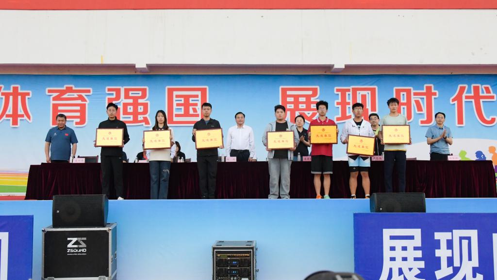 闭幕式上,总裁判刘成宣布了比赛成绩:网络空间安全学院代表队获得普通学生组团体总分第一名,数学科学学院代表队获得第二名,化学与化工学院代表队获得第三名;体育科学学院2023级代表队获得专业组团体总分第一名。此次运动会共有两人两次打破学校两项最高记录,六人三次打破学校三项乙组记录,一人一次打破学校甲组记录,一人一次平学校乙组记录。此外,体育科学学院代表队、文学院代表队、物理工程学院代表队分别获得教工组团体总分第一、二、三名。学生工作处副处长田凯宣布了体育道德风尚奖评选结果:统计与数据科学学院、心理学院、数学科学学院、网络空间安全学院、历史文化学院、物理工程学院、马克思主义学院共七个学院获此殊荣。
