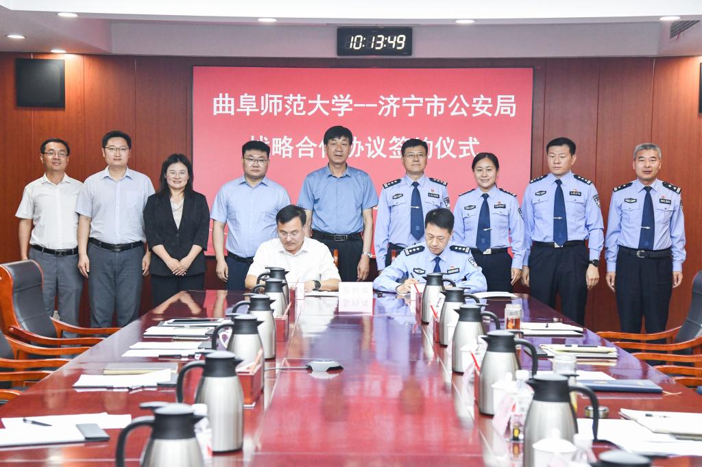 网络空间安全学院讯 为进一步加强学校与济宁市公安机关的合作,汇聚政产学研优势资源,服务保障济宁市经济社会高质量发展,创新人才培养模式,5月17日,D体育在线登录官网与济宁市公安局举办战略合作协议和共建实验室揭牌仪式。曲阜师大党委常委、副校长陈刚和济宁市公安局指挥中心主任王燕军代表双方签署合作协议,并为联合实验室揭牌。