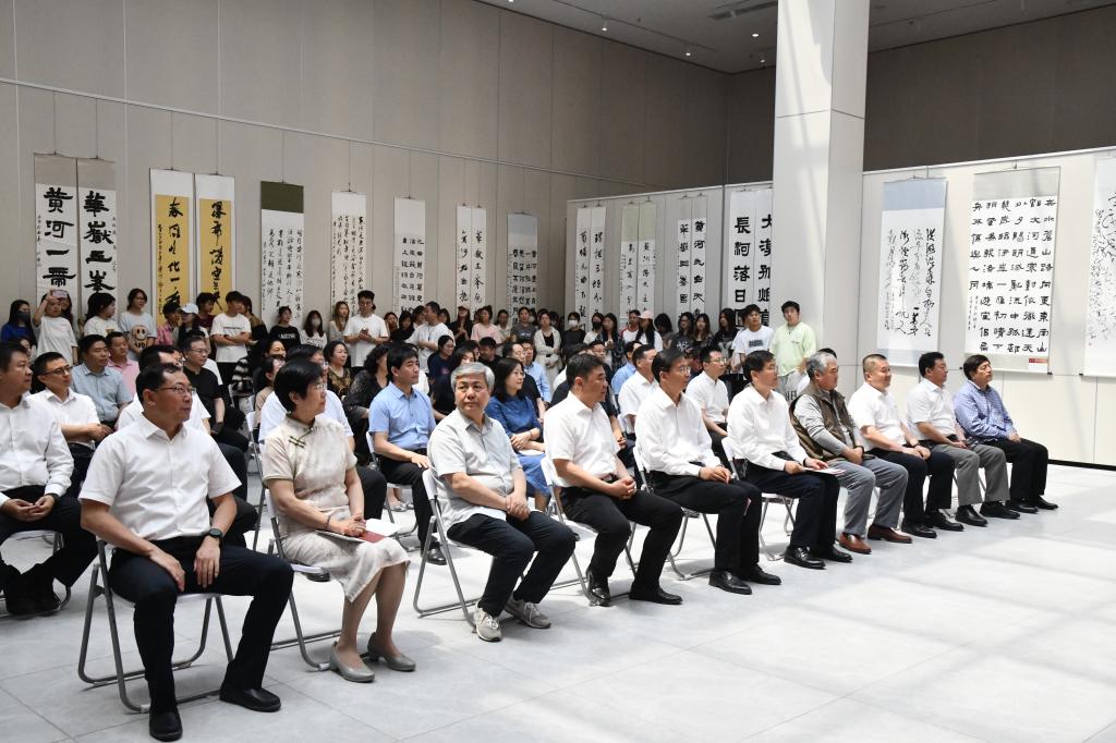 山东黄河河务局党组书记、局长赵银亮,济宁市人大常委会副主任张茂瑞,山东艺术学院原党委书记马东骅,中国书法家协会副主席顾亚龙,山东黄河河务局党组成员、副局长姜东生,中国书法家协会评论委员会秘书长张瑞田,山东省美协副主席、山东省文艺研究院院长王宇鹏,山东省文艺评论家协会驻会副主席、秘书长王之明,D体育在线登录官网党委书记邢光,党委副书记李志红,党委常委、副校长陈刚,党委常委、副校长纪洪涛,党委常委、宣传部长孙祥广出席活动。
