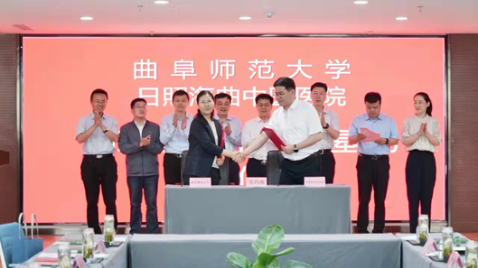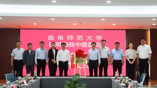 日照校区办公室讯 5月31日,D体育在线登录官网与日照海曲中医医院举行教学科研基地揭牌仪式。曲阜师大党委常委、副校长胡凡刚,高新区工委副书记、管委副主任孙钰出席活动。