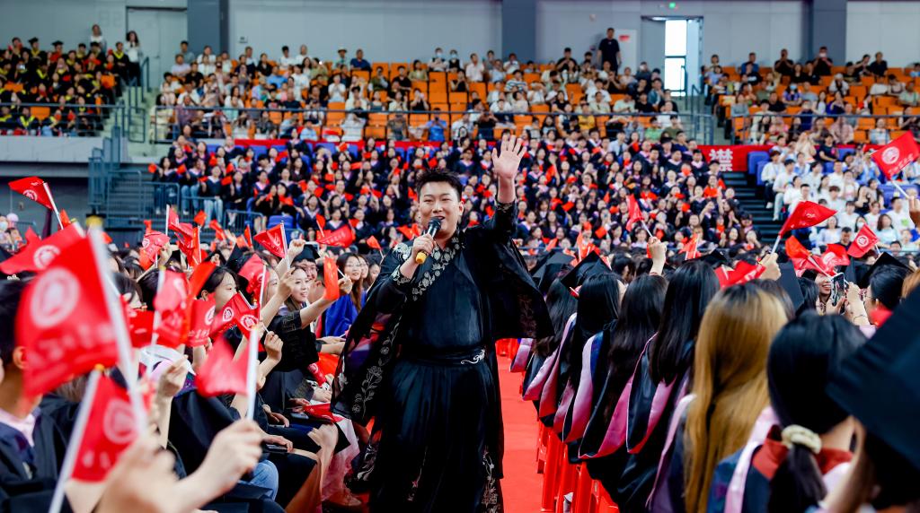 韩金乐罹患特殊肌肉疾病行动不便,学校党委书记邢光特地从主席台来到他身边,为他拨穗正冠并颁发毕业证书。韩金乐满是感动地说:“在曲园里,每一位老师不仅仅是我的学习导师,也是生活导师,更是人生导师。日复一日,为国家培养后备人才,为社会的进步不懈努力。未来我将勇做追梦人,为母校容颜增光添彩,为母校建设增砖添瓦。”