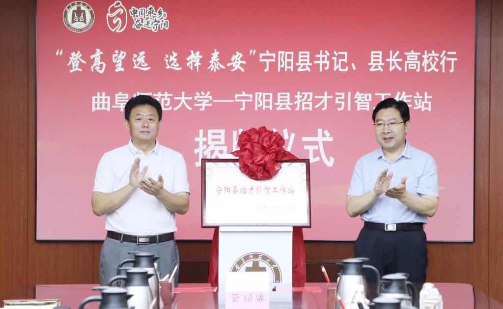 纪洪涛与桑晨锋共同为“宁阳县招才引智工作站”揭牌。