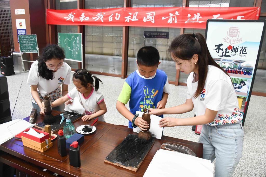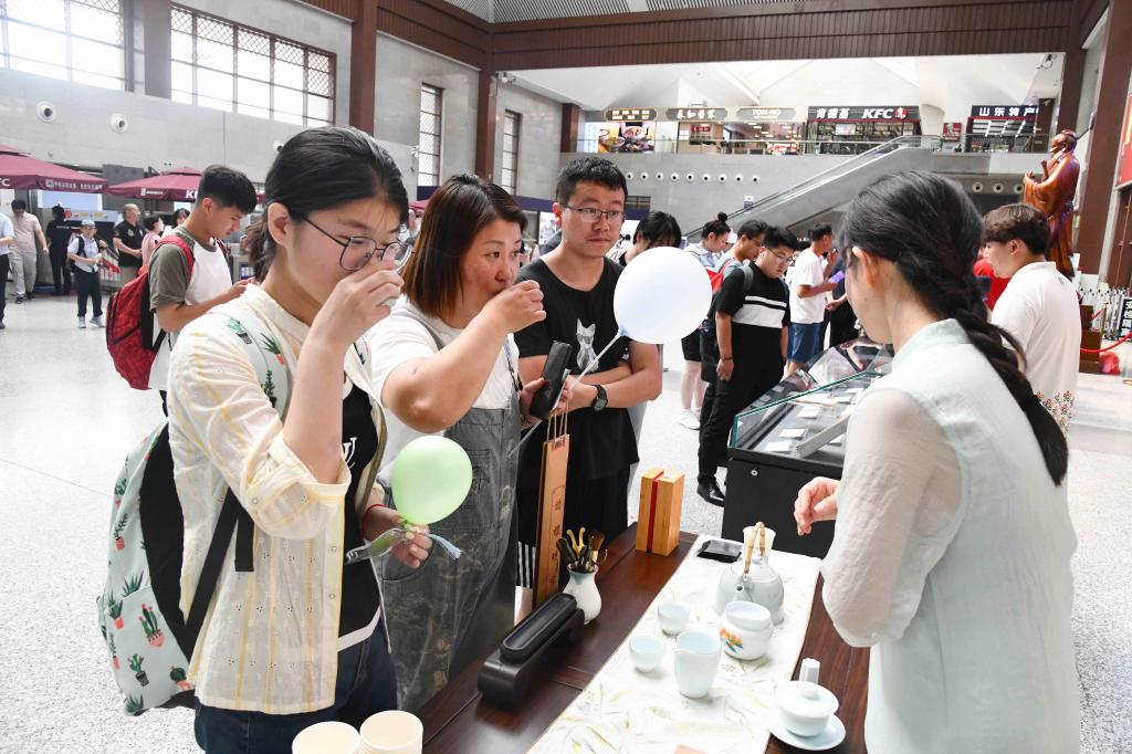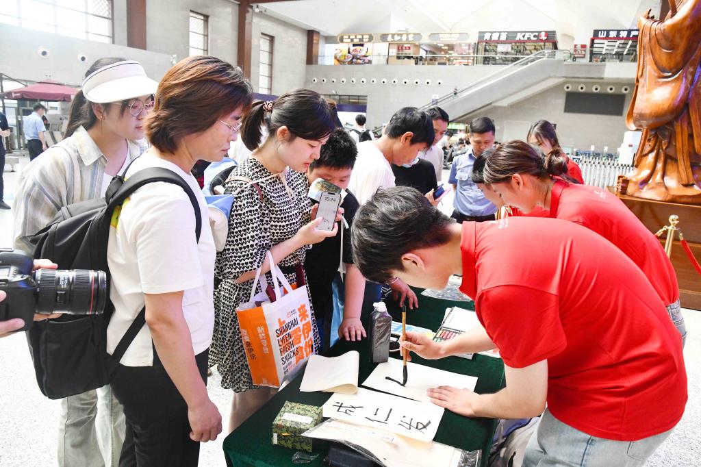 诗词飞花令、手绘中国地图、书法展演、标本制作、理疗保健……100多名学生纷纷变身能工巧匠,秀出了专业技能的新高度,为大家的盛夏旅程带来别样活力,彰显了大学师生的多彩魅力。D体育在线登录官网建设的教师博物馆将与曲阜高铁东站合作设立尊师优享服务台,携手擦亮孔子故里尊师重教的“最美名片”。通过这一创新服务,旅客凭教师有效身份证明可在候车期间享受一杯尊师香茶、品尝由志愿者现场制作的孔府非遗“师道点心”、体验拓印孔子行教像。服务台还展示了“七一勋章”获得者张桂梅、人民教育家于漪、全国最美教师黄大年等名师大家的珍贵教育文物,开展“寻找教师之道”互动答题,赠送教师主题文创作品。活动展示将优秀传统文化与文明出行的理念融合传播,让广大旅客目不暇接,赞不绝口。