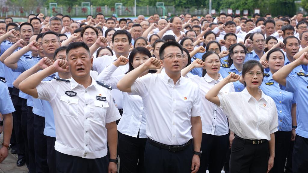 在华坪女高期间,孙祥广一行参加了站军姿、读经典、唱红歌、重温入党誓词等党性教育活动,观看了华坪女高师生的课间操和红色舞蹈、红色歌曲展演,沉浸式感受共产党人的担当和时代楷模的教育情怀。